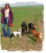 Bei uns kommt jede Pfote auf ihre Kosten, entweder im geselligen Team (Gruppenhaltung) auf Wunsch in ruhiger Abgeschiedenheit (Einzelhaltung), oder mit Familienanschluß (in der Wohnung). Unsere langjährige Erfahrung mit der Haltung von Hunden in kleinen (2) bzw. größeren (3-4) Gruppen zeigt je nach Charakter ein reges Interesse an der Kontaktaufnahme mit Artgenossen.